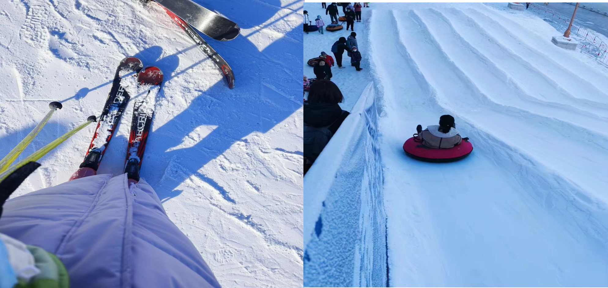 第一站,长春冰雪新天地。长春冰雪新天地以“都市冰雪·相约长春”为主题,围绕“冰雪旅游”“冰雪文化”“冰雪体育”“冰雪研学”“冰雪商贸”5个板块,运用“数字科技+国潮IP+时尚元素”及夜游灯光设计营造现场氛围,将科技、文化与艺术融入冰雪项目,体验各种冰雪运动,打陀螺,滚雪球,滑冰梯等,将吃,喝,娱,游融为一体,大力带动东北经济的发展。
