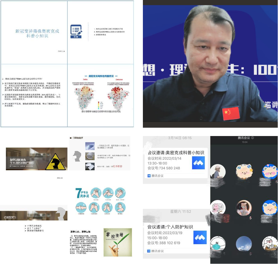 目前,线上课堂已开展三期:(一)“新冠变异毒株奥密克戎科普小知识”,详细介绍本次疫情奥密克戎亚型变异毒株的特点、传播途径、感染症状和抗原检测机制。(二)“新型冠状病毒个人及居家防护知识”,与学生分享隔离期间注意事项、洗手消毒七步法、如何保持良好身心状态等。(三)组织学生观看学生工作部举办的“思想·理论·人生:100讲”——疫情防控名师线上大讲堂系列巡讲第七讲活动。受必赢bwin线路检测中心王放院长邀请,南方医科大学组织学与胚胎学专业教授、实验管理中心主任董为人教授带来《创新——新时代赋予学子之历史使命》专题讲座。
