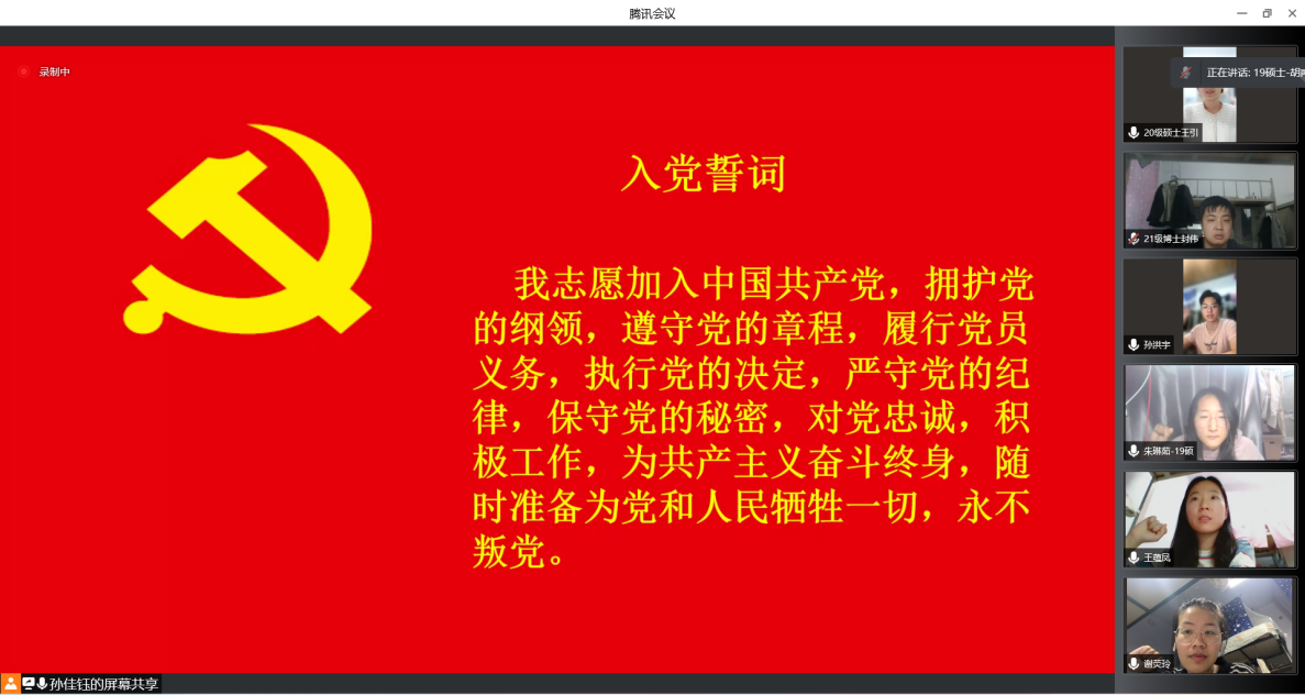 为深入贯彻习近平总书记关于疫情防控工作重要指示精神,落实学校疫情防控工作部署,充分发挥基层党组织战斗堡垒作用和共产党员先锋模范作用,坚决遏制疫情蔓延,全力阻断传播势头。3月23日,必赢bwin线路检测中心研究生党支部举办“同心协力·共克时艰”主题党日活动,党委副书记曹国丽和全体研究生党员通过线上方式参加本次活动,活动由研究生辅导员孙佳钰主持。