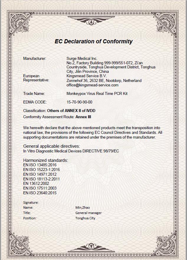 为推进产学研结合,贯彻落实国家关于加强自主创新、建设创新型国家战略决策的重要举措,助力猴痘疫情快速防控,必赢bwin线路检测中心王放教授团队继研发4款COVID-19快速诊断产品后,应国家和社会需求,近期开展了关于猴痘检测试剂盒的研究。据中国吉林网报道,截止2022年6月1日,全球30个非猴痘流行国家和地区已上报550多例猴痘确诊病例。王放教授团队联合吉林双正医疗科技有限公司,依托吉林省科技厅“精准感染病学重点实验室”、吉林大学转化医学院、通化市科技局和吉林双正医疗科技有限公司共同签署的“体外诊断试剂POCT研发技术平台”等科研平台,紧急研制出了两种猴痘病毒检测试剂盒——猴痘病毒抗原检测试剂盒(胶体金法)和猴痘病毒核酸检测试剂盒(荧光PCR法),并于2022年5月24日获得了CE认证。这是王放教授团队在传染病诊断检测方面又一重要成果。