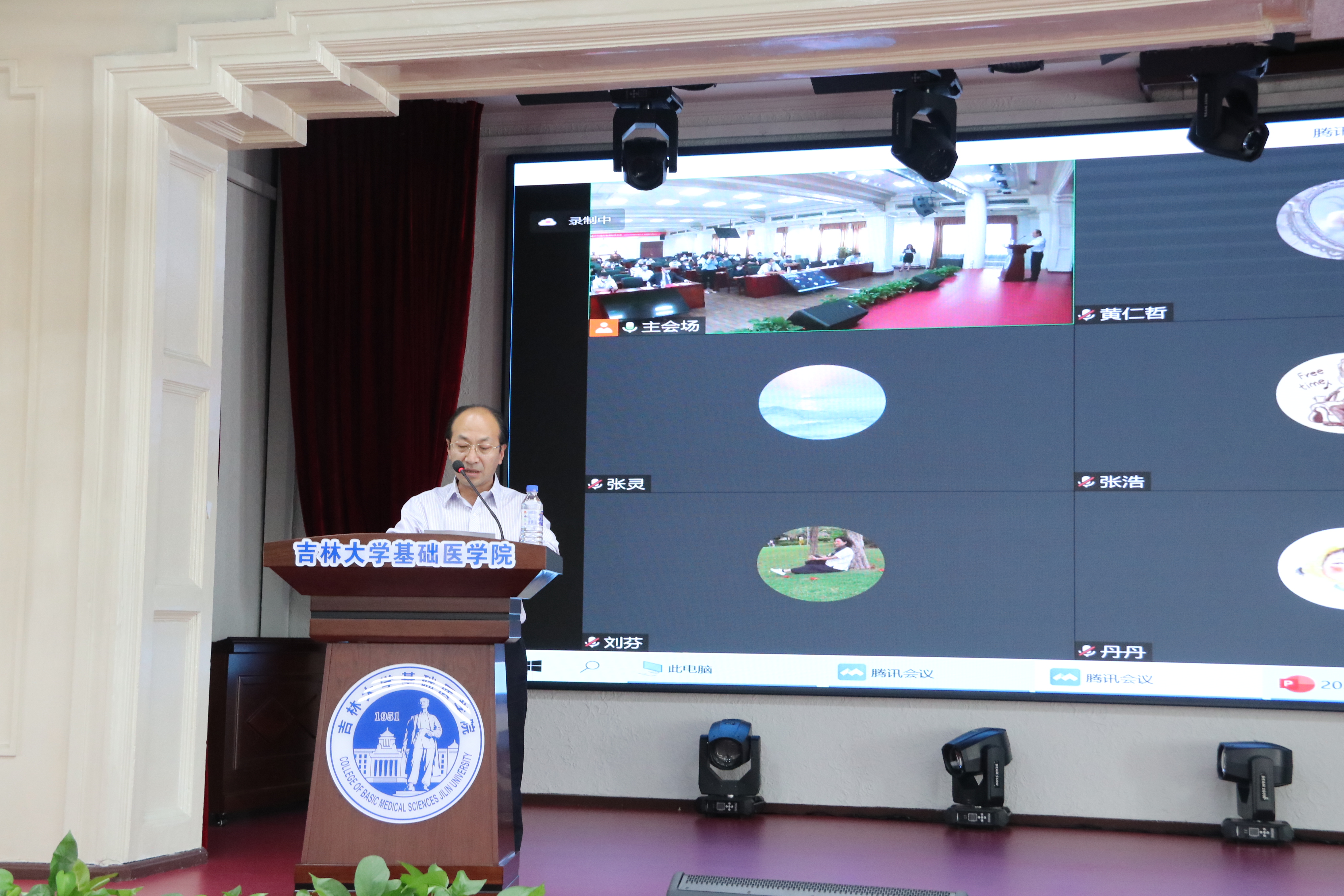 庆祝表彰大会在雄壮的国歌声中开始。首先,大会播放了由学院党委制作的纪录片《先贤之光》,以鲍鉴清、杨敷海、王凤振、杨贵贞、徐景达、王凡六位基础先贤为代表,向为我国医学教育事业做出突出贡献的学院前辈们致敬。号召学院全体师生,继承并发扬基础精神,为新时代吉林大学医学教育创新发展贡献力量与担当。