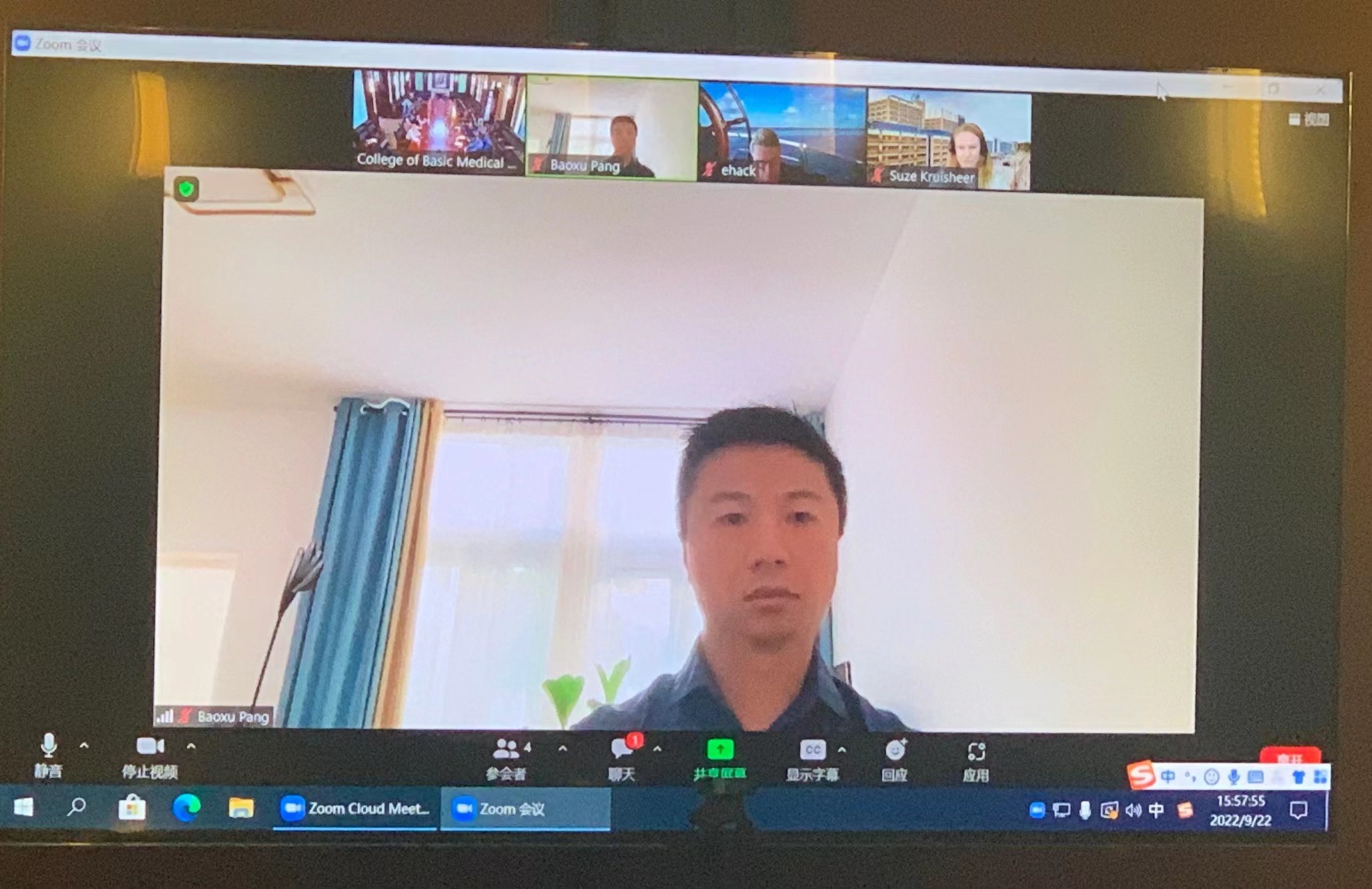 2022年9月22日下午,学院与荷兰莱顿大学医学中心召开线上合作洽谈会。莱顿大学医学中心国际合作处负责人Suze Kruisheer,Evelien Hack,莱顿大学医学中心庞宝旭副教授,必赢bwin线路检测中心院长王放、党委书记王晓荣、副院长刘海岩、副院长辛颖、生物医学科学系主任张灵、病原生物学系外籍教授杨青等共同在“云端”就双方合作意向进行了磋商。