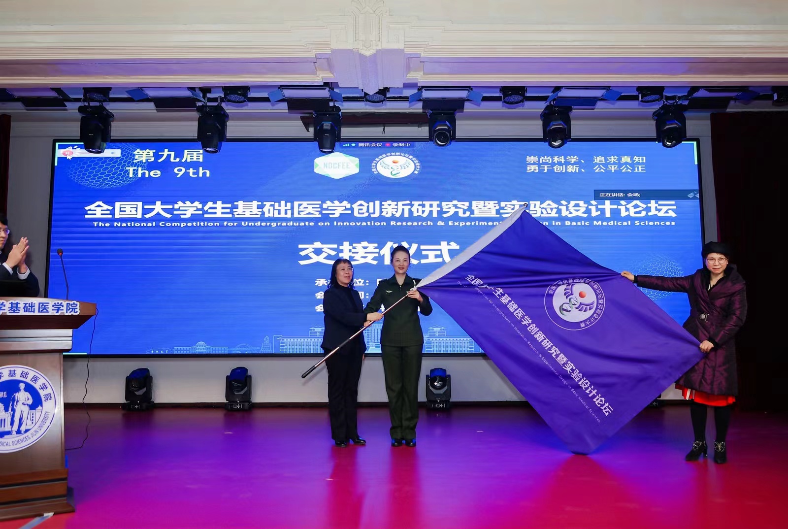 闭幕式的最后,吉林大学与第九届全国大学生基础医学创新研究暨实验设计论坛承办单位陆军军医大学举行了交接仪式。