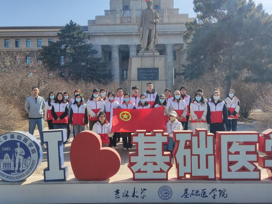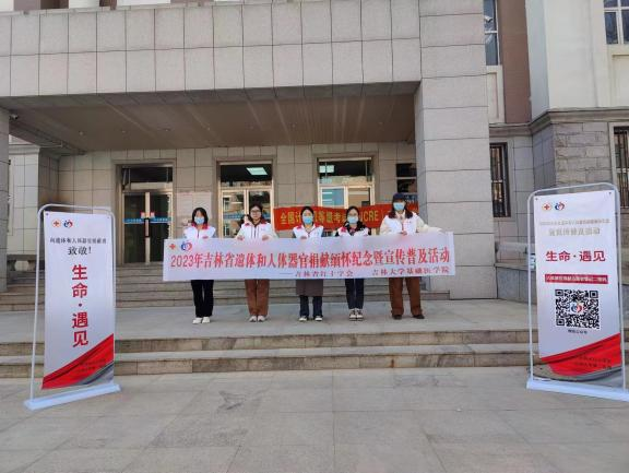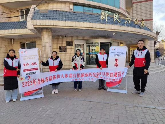 为缅怀纪念吉林省遗体和人体器官捐献者,表达对遗体和人体器官捐献者的崇高敬意和深切的哀思,弘扬“人道、博爱、奉献”的红十字精神,传播“自愿无偿、高尚利他”的遗体和人体器官捐献理念,激励广大青年同志参与到公益活动中,2023年3月25日上午,吉林省红十字会联合必赢bwin线路检测中心“基础之光”志愿者协会,在人体解剖学系赵航老师、赵亚明老师、鞠爱鹏老师团委负责人孙佳钰老师的带领下,由吉林省遗体捐献志愿者服务队、基础之光志愿者协会及必赢bwin线路检测中心研究生组成的团队开展了遗体和人体器官捐献缅怀纪念暨宣传普及活动。