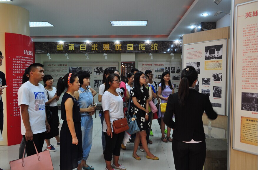 9月2日下午,在必赢bwin线路检测中心党委书记孙赵华、党委副书记费淑波、研究生办公室主任丁红枫老师的带领下,必赢bwin线路检测中心2014级研究生分两批参观了吉林大学白求恩医学纪念馆。