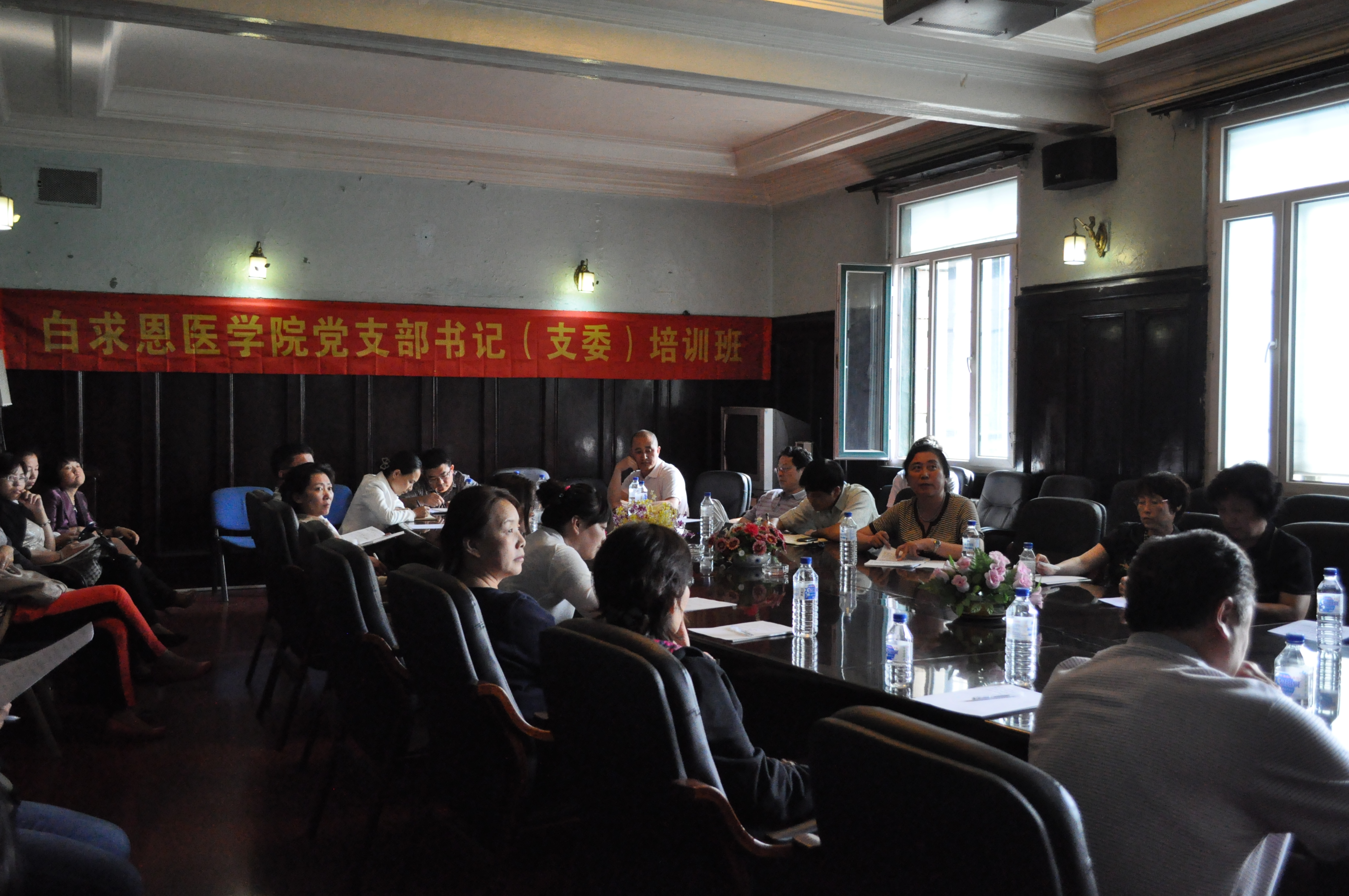 为迎接建党九十一周年,落实学校《关于开展“纪念建党九十一周年 喜迎党的十八大”系列活动的通知》要求,在创先争优活动中深入开展基层组织建设年活动,白求恩医学院于6月13日组织开展了党支部书记(支委)培训活动,活动由实践环节,理论环节和交流环节三个部分组成。全院34名教工党支部书记、支委参加了培训。