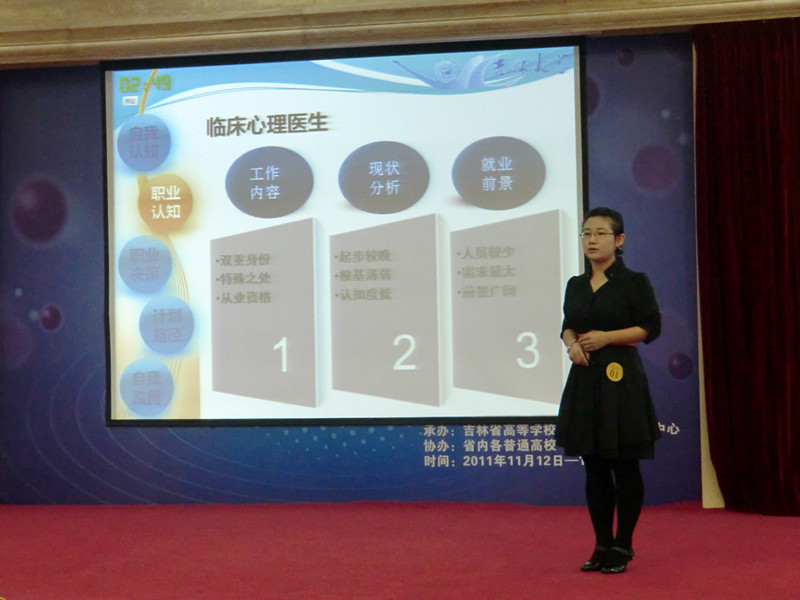 11月12、13日,以“规划自我,服务社会,赢取未来”为主题的吉林省第二届大学生职业生涯规划大赛决赛在吉林省高等学校毕业生就业指导中心隆重举行,白求恩医学院2008级临床医学专业七年制朱翠琳同学代表吉林大学参加了此次决赛,最终获得本次决赛的三等奖。