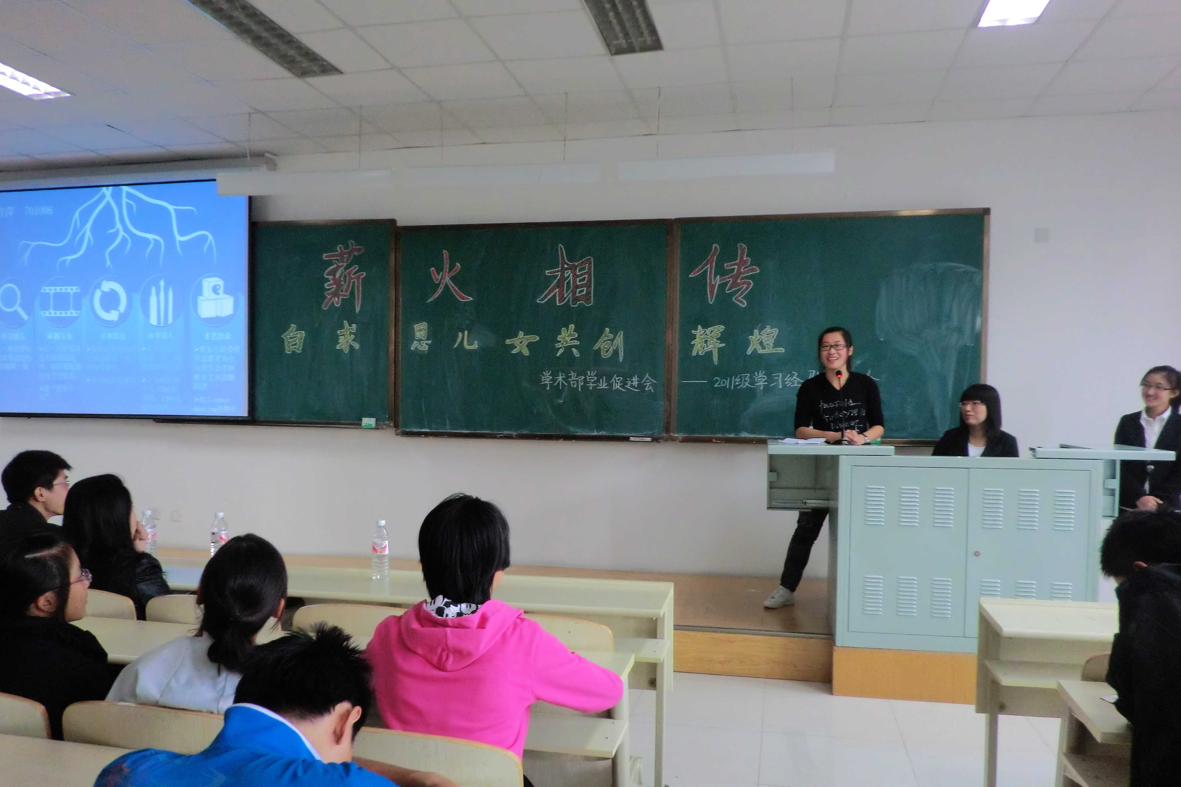 本次学习经验交流会邀请了贾林沛等六名同学作为嘉宾,分别从掌握自修之道、基础课的学习、培养自己良好的心态等多角度与新生进行了学习、生活的经验交流。其中陈雪东同学从教材入手,通过阐述教材和学习的特点,给新生提出了学习过程中应该注意的宝贵意见。