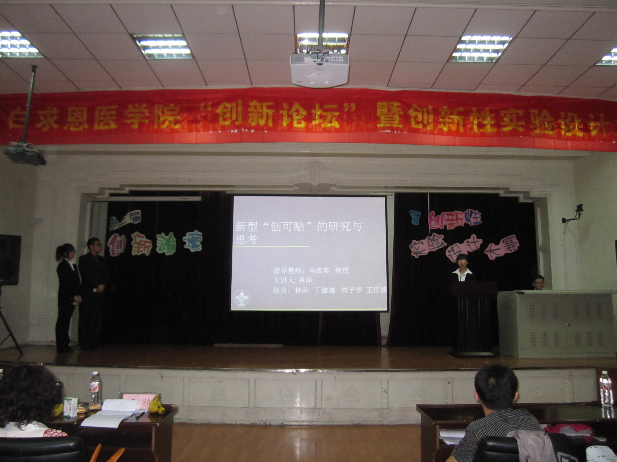 5月24日18时,白求恩医学院在新民校区基础楼二楼多功能学术报告厅举办了第二届创新论坛暨创新性实验设计大赛,大赛邀请了白求恩医学院常务副院长孙连坤教授,院长助理、实验中心主任陈霞教授,病原生物学系主任王丽教授,病理学系王琳教授出席并担任评委,学院团委书记夏燕来作为嘉宾参加了大赛。