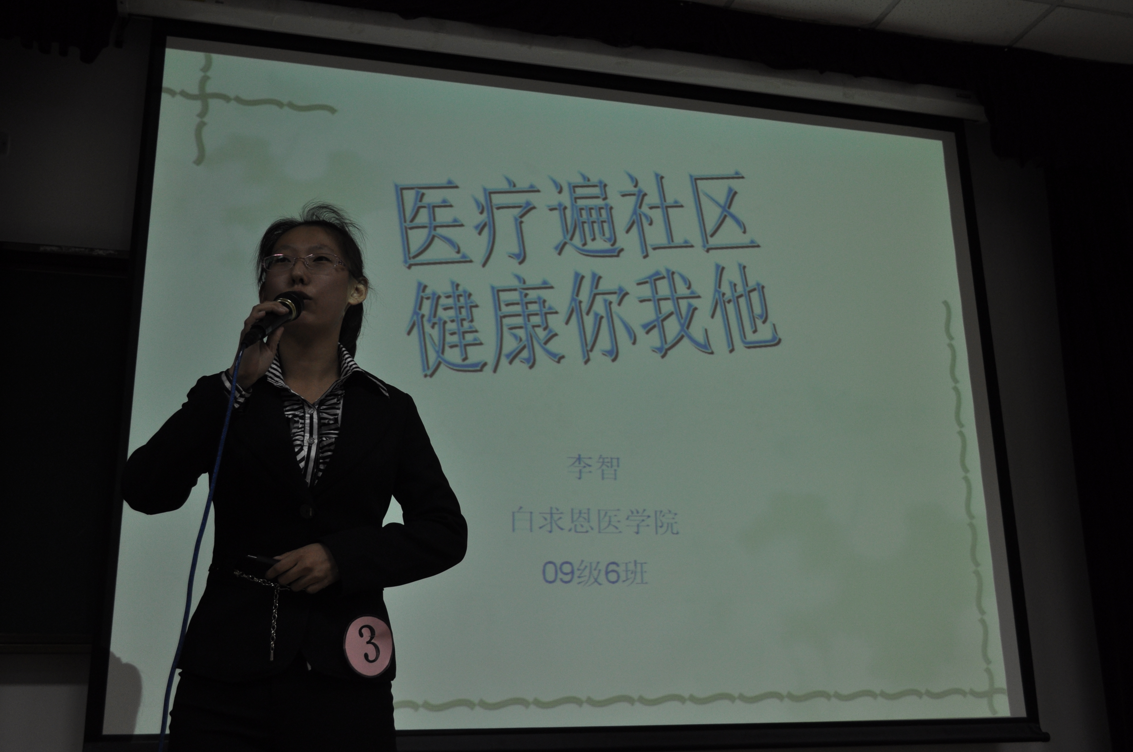 六位参赛选手依次阐述了自己的职业生涯规划方案,几位选手的职业目标定位不尽相同,有的选择学术路线,如成为内分泌科、心外科、神经内科的专家;有的选择行政路线,如成为医院院长,卫生部部长。每位选手演讲完毕后,都要回答评委及观众的提问,评委会对选手的文稿及现场表现提出建议。此次比赛评分分为现场表现与书面作品两部分,现场评分最高分的选手为09级李智,她的目标是成为“医学金融人”,建立社区连锁医院。