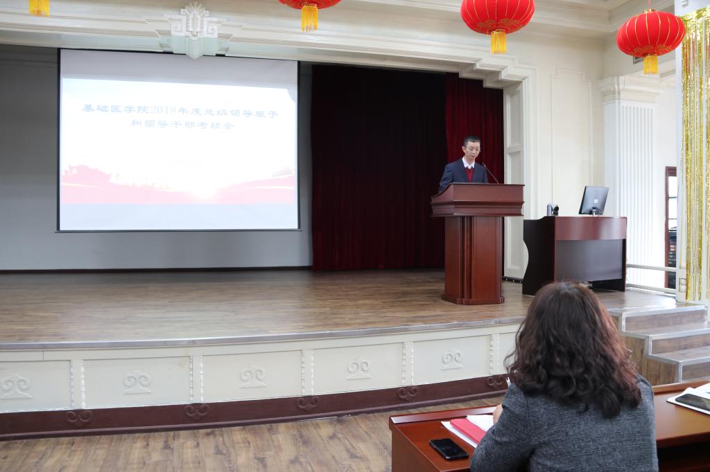 会上,院长孙连坤代表领导班子进行了工作总结。孙院长从党建工作、人才队伍建设、教科研工作、实验室建设和安全以及平台开发等八个方面汇报了学院一年来各项工作取得的成绩,并对学院改革发展中存在的主要问题进行了分析,同时对2019年工作提出构想。随后,学院全体领导干部依次进行了个人述职。