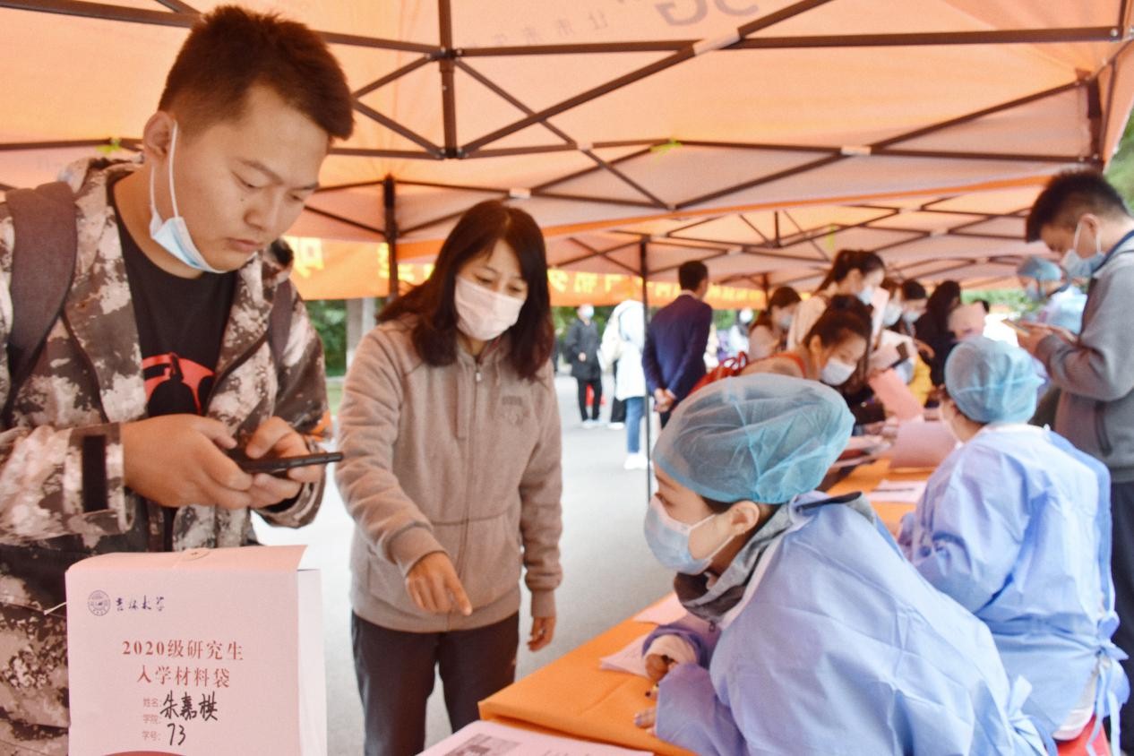 秋风送爽,丹桂飘香,又是一年迎新时。2020年9月18日,必赢bwin线路检测中心迎来2020级新生报到日。本次迎新工作于上午8时在必赢bwin线路检测中心顺利进行,98名来自五湖四海的崭新面孔相聚在百年学府吉林大学。 今天早上7:30,迎新现场各项工作早已布置妥当,学校相关部门的迎新工作人员也已各就各位,八点整,新生陆续到来,在迎新老师和学生工作者的引导下,有条不紊的办理入学手续。学院研究生办公室设置了包括入学登记,材料发放,住宿、保险、一卡通关联,党组织关系及户籍转入等多个服务窗口,确保新生报到工作有序进行。学院刘海岩副院长、曹国丽副书记、研究生办公室丁红枫主任、秘书李晓慧老师,王国强老师全程耐心指导,与同学们亲切交谈,帮助解决新生的各种问题。