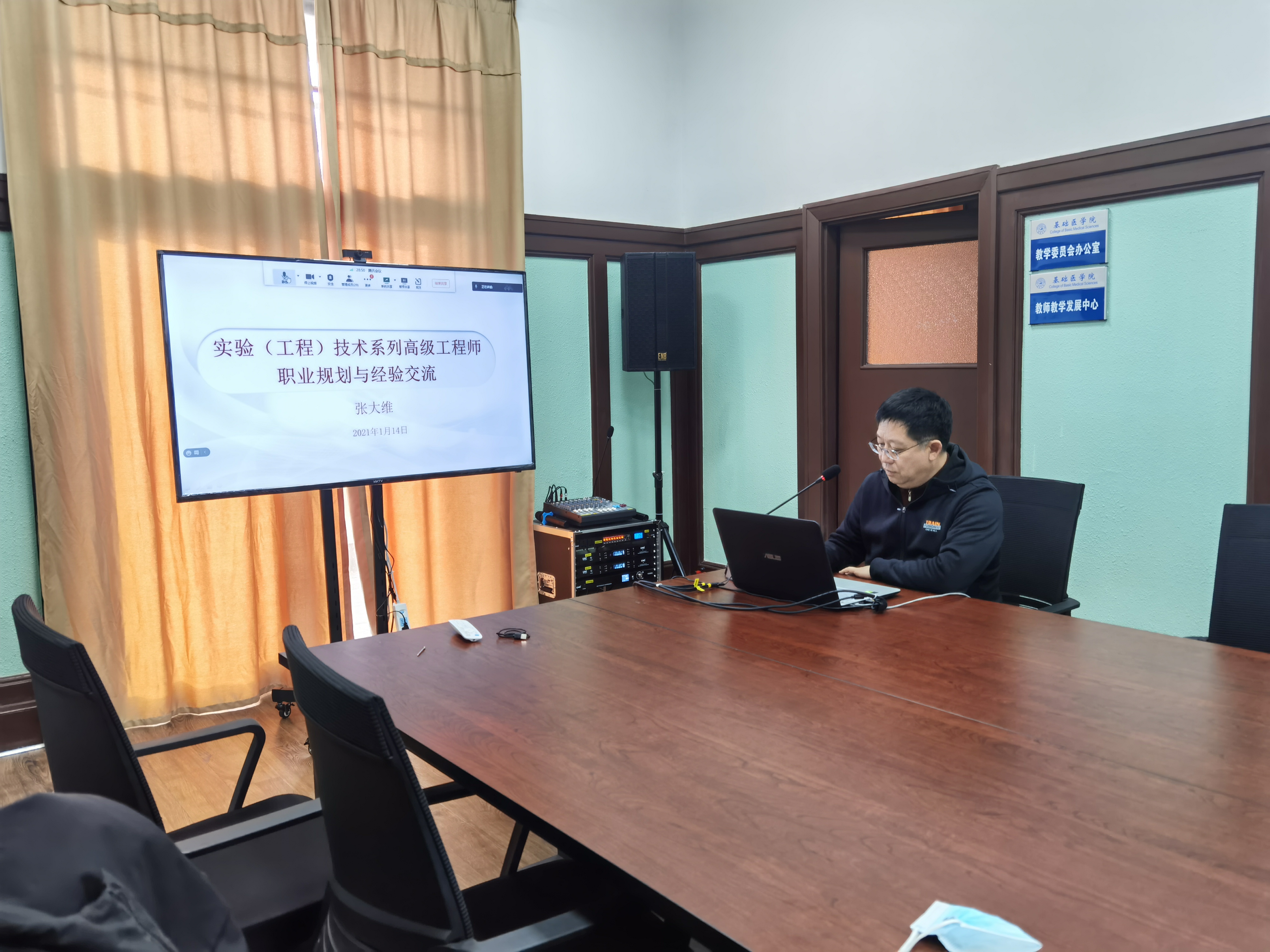 为进一步提升学院实验技术人员素质,激发工作热情,鼓励踏实工作、大胆创新,为教学科研提供优良的技术支撑和条件保障, 1月14日下午,必赢bwin线路检测中心通过线上腾讯会议方式举行实验(工程)技术系列高级工程师职业规划与经验交流会。会议主讲人为必赢bwin线路检测中心动物中心张大维研究员。