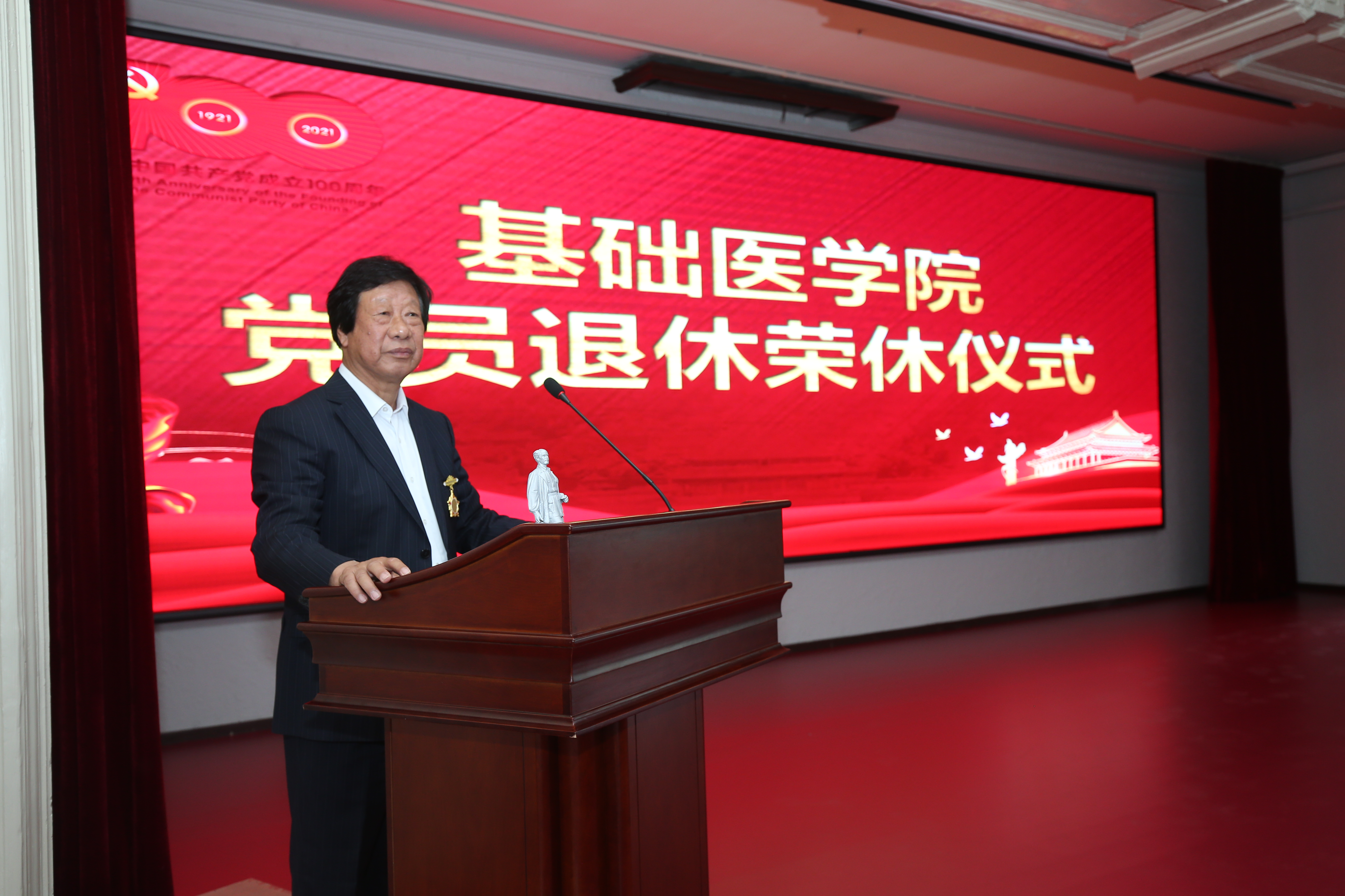 最后,赵国庆副校长讲话。他首先代表学校和学部向光荣退休的教师表示敬意和诚挚问候,他指出必赢bwin线路检测中心作为吉大医学的重要组成部分,在70年的发展历程中,一批又一批优秀共产党员、专家教授,为学校、学部留下了宝贵的精神和思想财富,他们是基础学科的创建者,是医学事业发展的推动者,是白求恩精神的传承者,他们的奋斗史是吉大医学发展史的重要组成内容,也是吉大医学精神的重要组成部分。赵国庆副校长高度赞扬了以李玉林教授为代表的老专家们对中国医学高等教育、对医学事业发展做出的历史性贡献,他们是吉大医学的宝贵财富。这些教师是高尚师德师风的代表,希望基础所有的老师以他们为榜样,不断努力拼搏,为基础医学事业发展贡献力量。