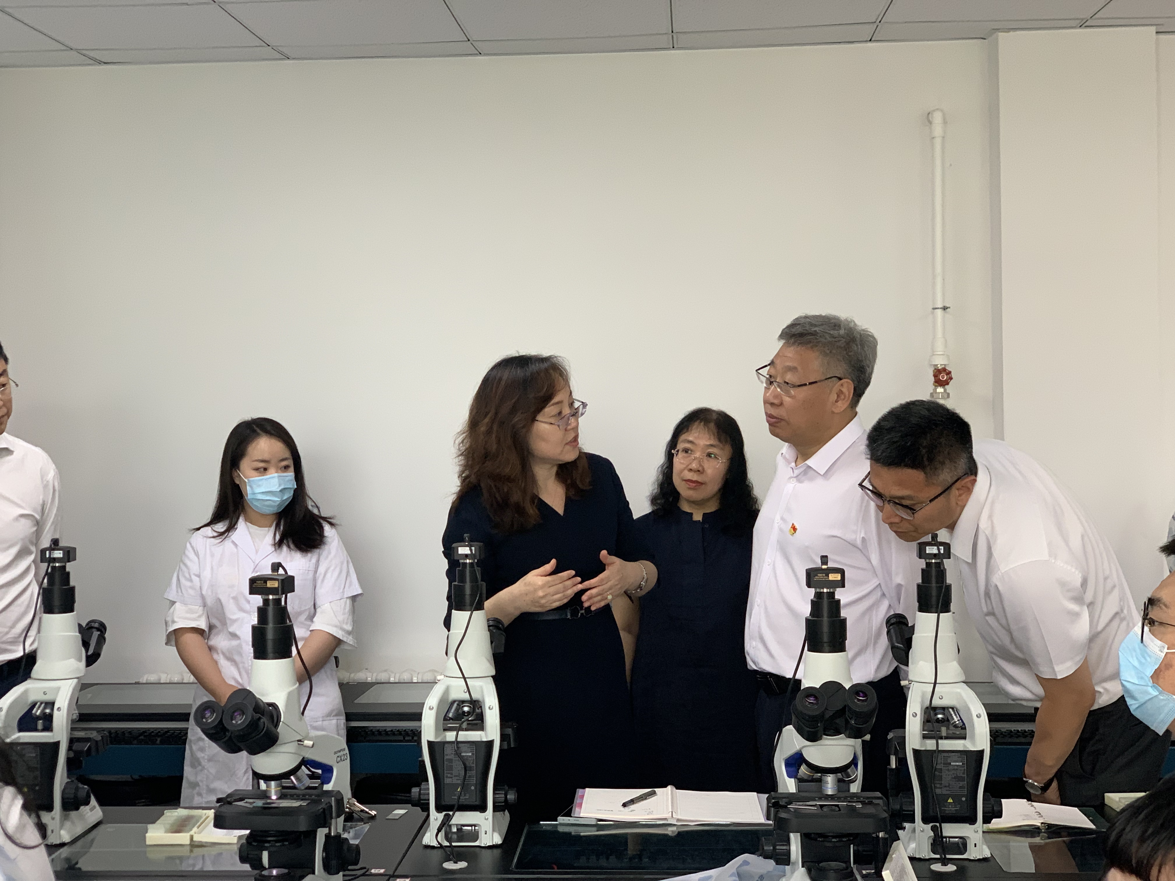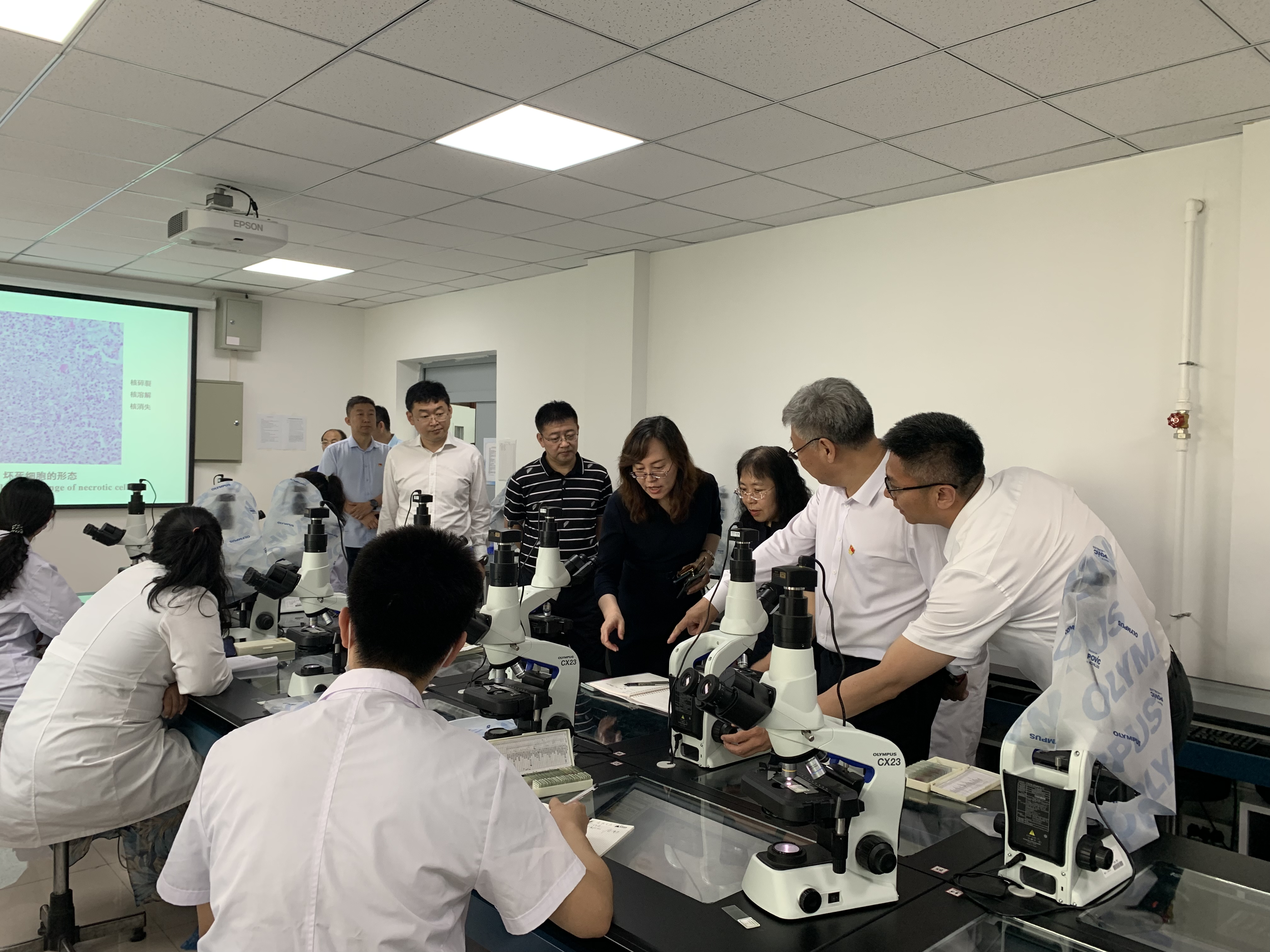 冯正玉书记首先听取必赢bwin线路检测中心院长王放的工作汇报,随后,走进实验室向师生表达问候。在可移动实验平台,于蕾老师和学生们正在做的家兔呼吸运动的调节手术演示实验,学生可通过清晰的大屏幕看到手术演示全过程,真正实现互联互通,实时互动。在病理实习课堂,观摩了何旭老师“损伤的修复”课程,观看了学生的实验演示并亲切问候同学们的学习状况,病理生物学教育部重点实验室主任、副院长辛颖向冯书记介绍了病理学形态实验的相关情况。冯书记对同学们的实操能力给予了充分肯定。在分子生物学实验室,老师正在带领同学们进行转基因斑马鱼克隆实验。斑马鱼是国际上用于快速研究人类疾病信号传导途径、有效药物高通量筛选的最佳模式生物之一。冯书记对学院在斑马鱼方面的前沿研究表示肯定并寄予厚望,期待学院的斑马鱼研究能在探索人类疾病发病机理,筛选治疗靶点,进行新药开发以及药物毒性与安全性评价上发挥更大的作用。最后,冯书记一行来到医学影像虚拟解剖联合实验中心检查调研,参观3D打印白求恩像,观看了必赢bwin线路检测中心宣传片。