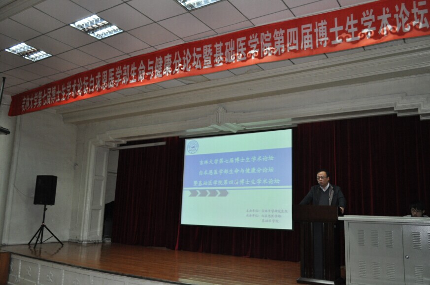 10月20日下午,由研究生院主办,白求恩医学部、必赢bwin线路检测中心承办的吉林大学第七届博士生学术论坛白求恩医学部生命与健康分论坛暨必赢bwin线路检测中心第四届博士生学术论坛在基础二楼多功能报告厅召开。论坛邀请必赢bwin线路检测中心副院长李一雷、第一临床医学院党委副书记于家傲、口腔医学院教授于维先、基础医学学位评定分委员会主席王丽颖、必赢bwin线路检测中心免疫学系主任李一作为现场宣讲专家。白求恩医学部人才培养办公室副主任丁亚春、必赢bwin线路检测中心副院长陈霞、副院长王放、党委副书记费淑波、学术委员会主席赵华、病理学系博士生导师刘晋宇、免疫学系博士生导师台桂香出席了论坛,150余名研究生参加了论坛。论坛由分子生物学教研室副教授孙巍主持。